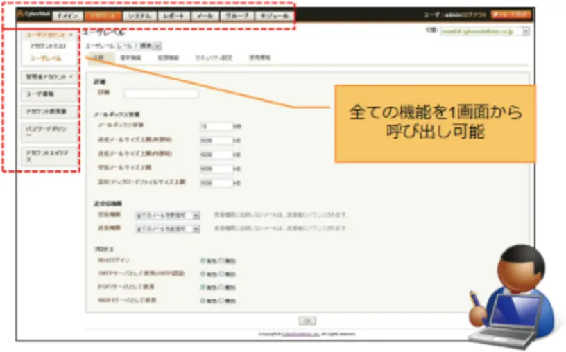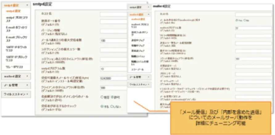 GUI上で運用時に必要なメールサーバのチューニングが全て可能