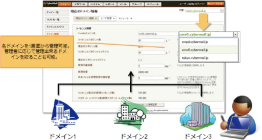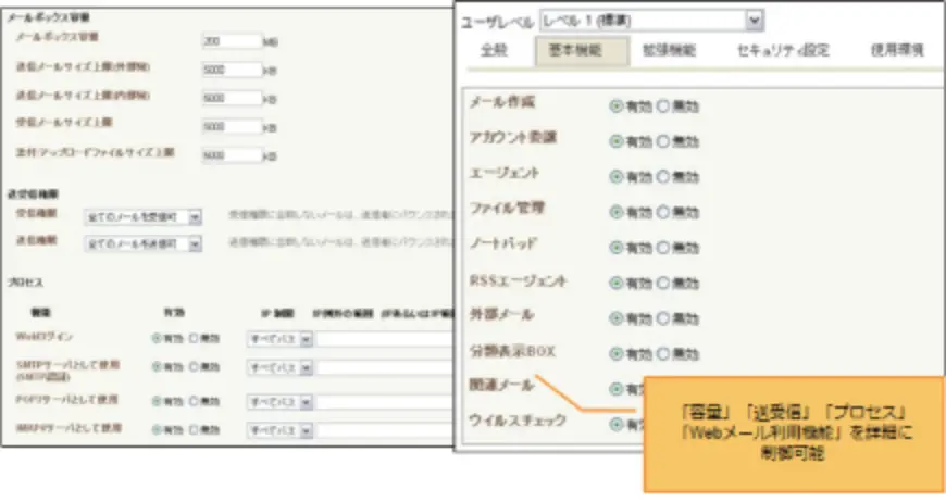 送信・容量・プロセス・詳細機能制限可能なレベル設定を「ドメイン単位で30段階」用意