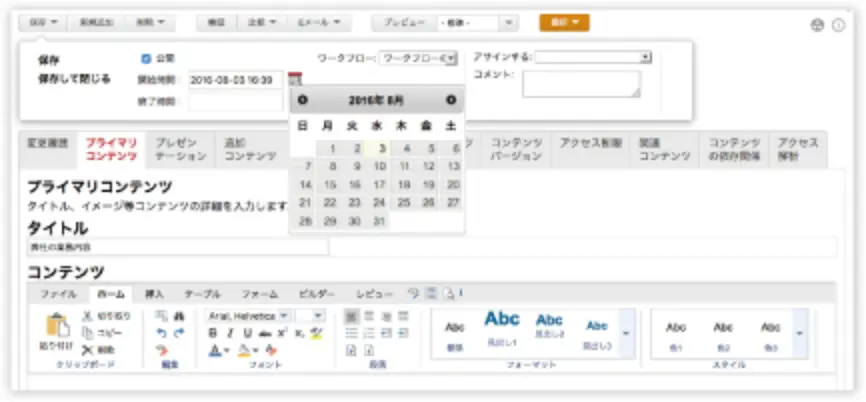 - コンテンツ作成、編集、維持管理、ワークフロー